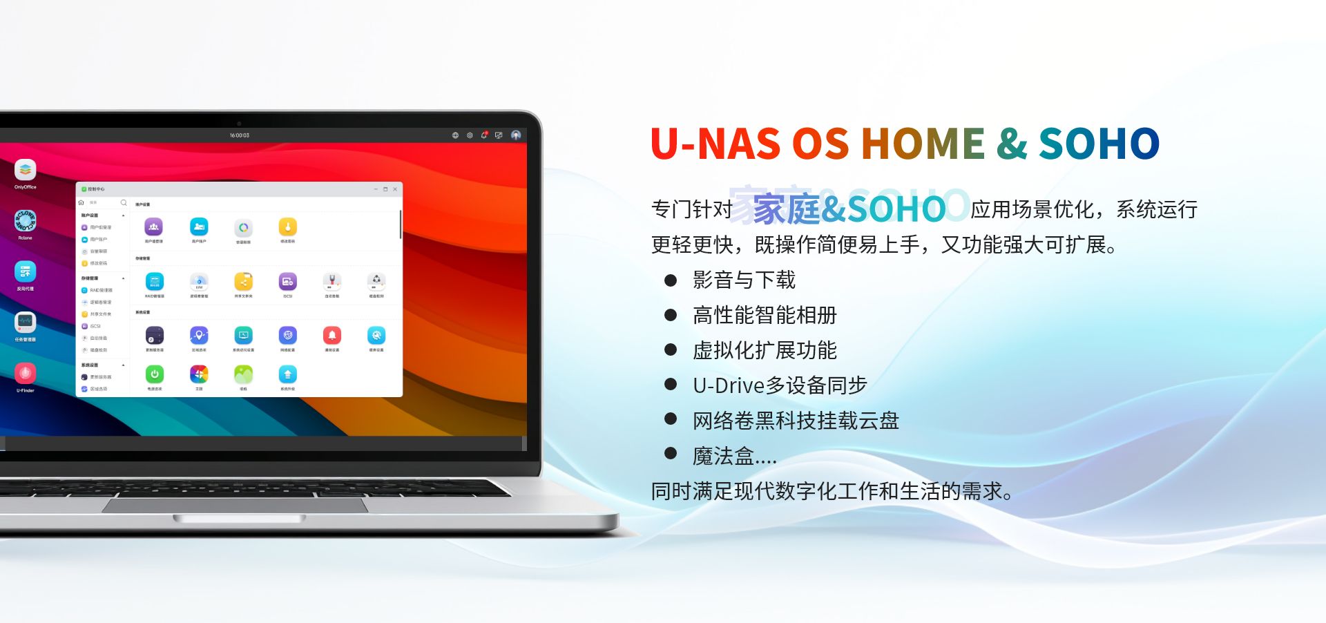基于萬由U-NAS OS 體系的存儲、備份、私有云服務(wù)的一體化平臺,為企業(yè)提供一套安全、高性能、彈性可擴展的一體化數(shù)據(jù)統(tǒng)一管理、主動備份和數(shù)據(jù)在不同地區(qū)、不同設(shè)備同步的解決方案。并提供個性化的定制服務(wù),使企業(yè)的TOC(總體擁有成本)最低